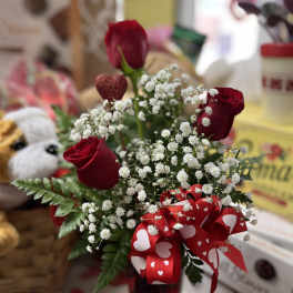 $85.00 + tax & delivery Available (2/11-2/14) *order now - while supplies last (roses are in a presentation bouquet style with greens and baby's breath)